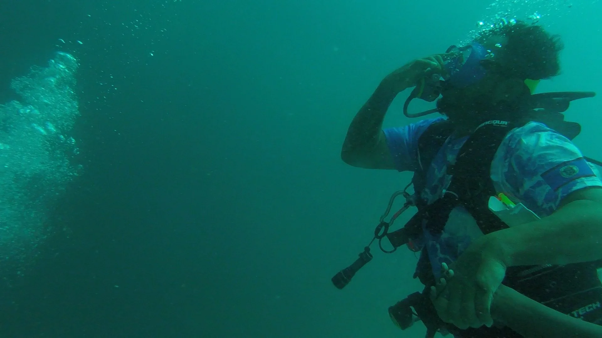 Showing the “ok” symbol in the Great Blue Hole.